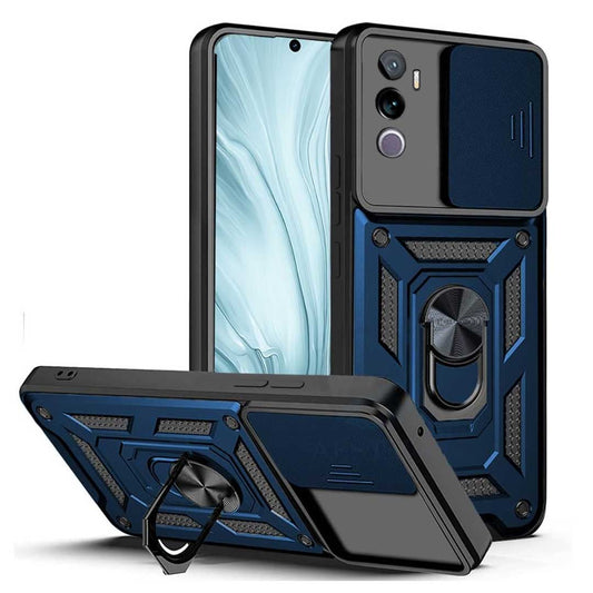 VIVO V40E 5g Armor Military-grade Case With Sliding Camera Cover & 360 Kickstand-black